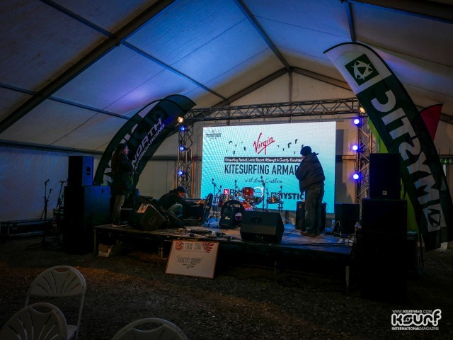 If anything the cancelled record attempt means we can all have a lie in tomorrow and concentrate on having a great time as the largest gathering of kitesurfers in the UK gets underway. Right now the band is warming up for the Friday night with a DJ ready to play tunes into the small hours. There is plenty of on-site camping available and it is business as usual for the Armada!
