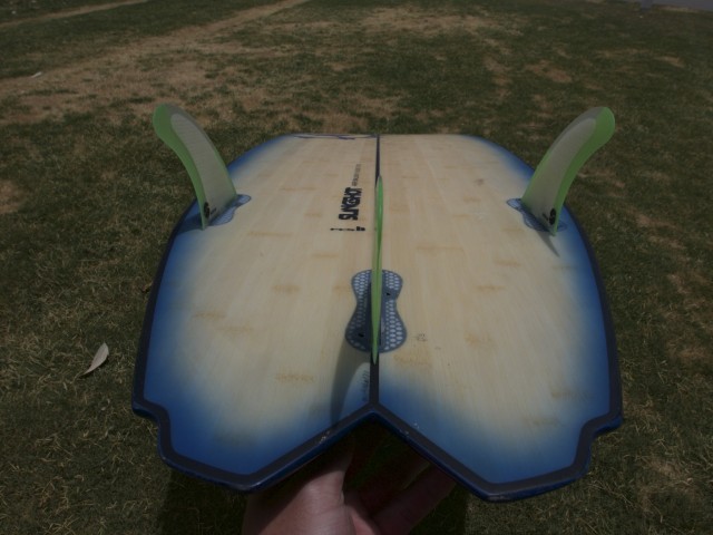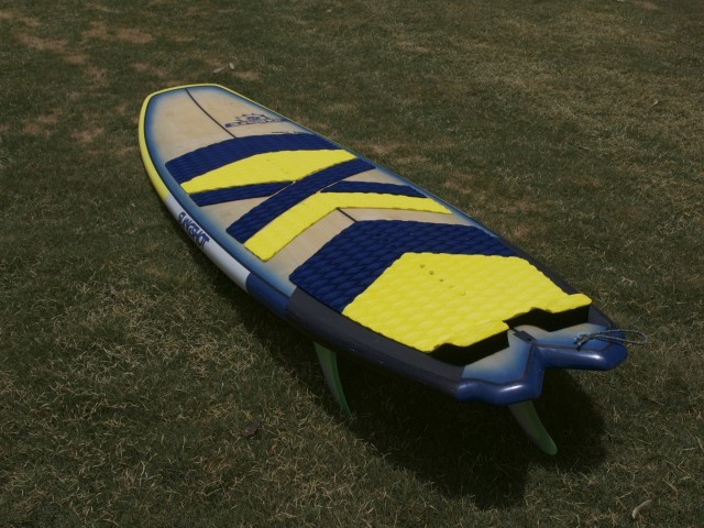 We really enjoyed the thruster set up on the Angry Swallow, you get plenty of drive but can still snap the tail out with ease, especially if you get some smaller softer fins in the rear end. In the air the board is fun to play with, it launches off the waves with ease, and the compact shape really sticks to your fit when the wind is up. We would love to see some grab rails on there in the future just to help with some of the more modern strapless freestyle tricks.