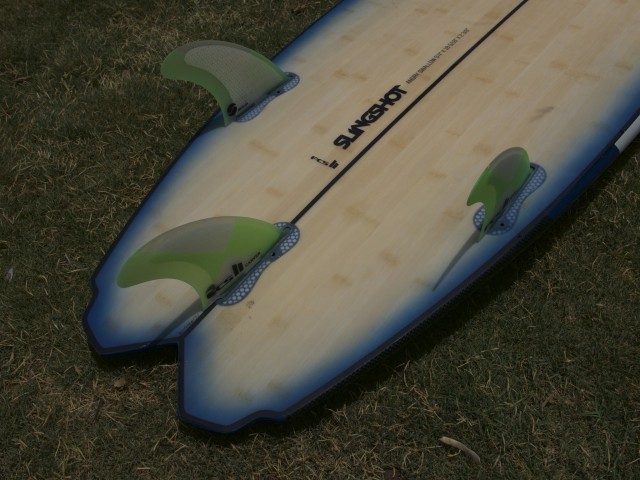 The Angry Swallow has these characteristics in abundance, but it can also handle some serious sized swell too. It is an exceedingly versatile board and with the stance now shifted back you can really crank out the turns on the waves. Pushing through with your back foot at the end of the turn rewards you with extra spray and a satisfying tail slide that is controlled.