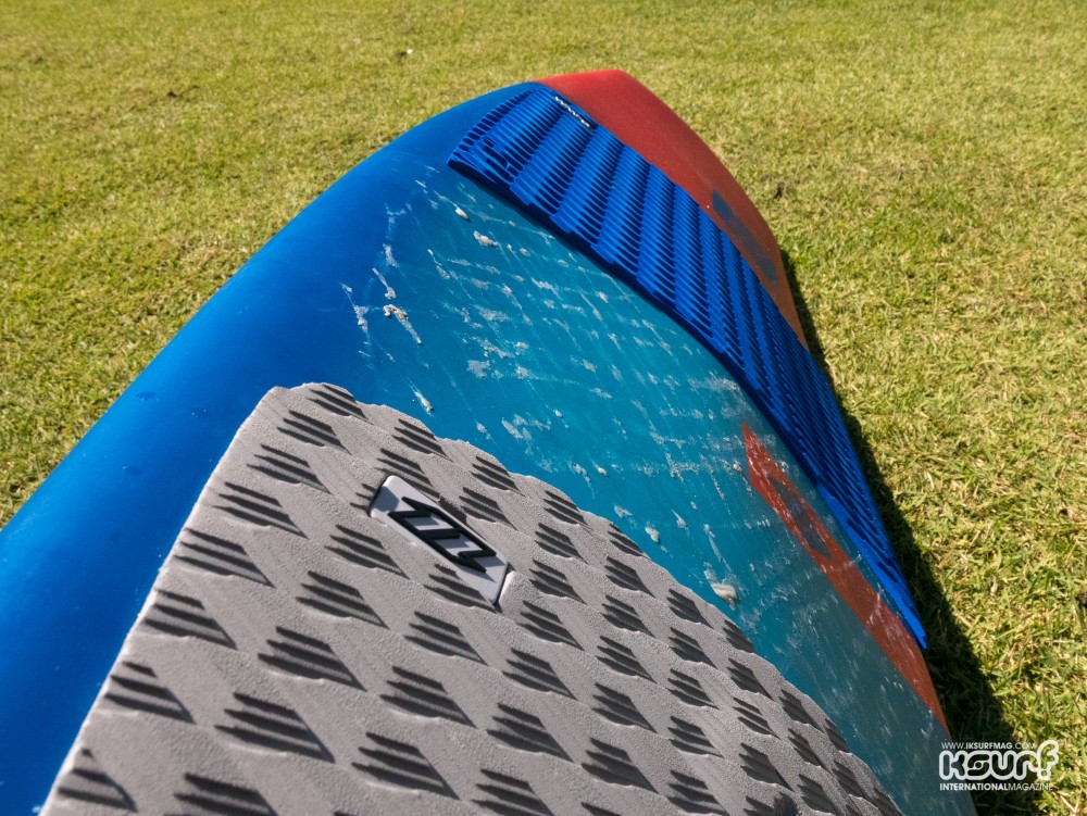 While the changes to the popular Whip CSC have been subtle, they have made a stark difference to the way the board feels underfoot. The new shaped deck is really comfortable. I fractured my calcanium (heel) years ago and I struggle to ride surfboards without pads. But while in Mauritius at the meeting I managed to ride this board for three hours without any discomfort. The test model we now have we’ve padded up, but there is no denying the heel shock absorber combined with the domed deck have made a stark improvement to rider comfort.
