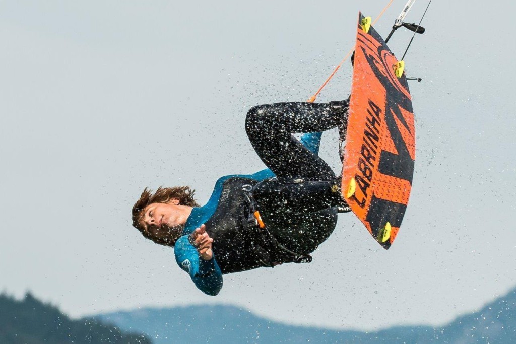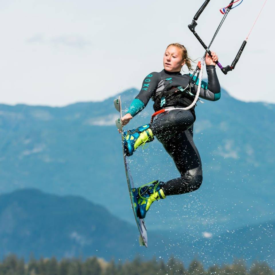 Next up were the women. Airush rider Kenzie Carlstrom was coming off a win in the amateur women’s division at the Hood River’s Bridge of the Gods last month. In February she took home the Western Australian Championship. Born in Nelson, B.C., Carlstrom said she was excited to be competing in her home country. She came out on fire in Kite Clash, pulling ahead of the pack with tricks that landed her a five point lead.