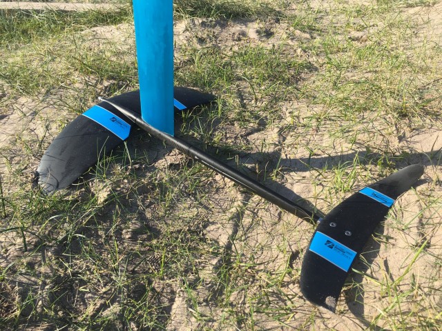 The construction on this set up really is second to none, the carbon wings are beautiful and the entire way the system just slots together with ease is a testament to the care and attention paid in the factory. The overall combination is light too, the carbon wings helping to reduce the overall weight. The entire foil line up is interchangeable, hence the removable back wing, so once you have a mast and fuselage you can the bolt on any set up you desire. As you improve you can just get smaller, faster wings and progress even further.