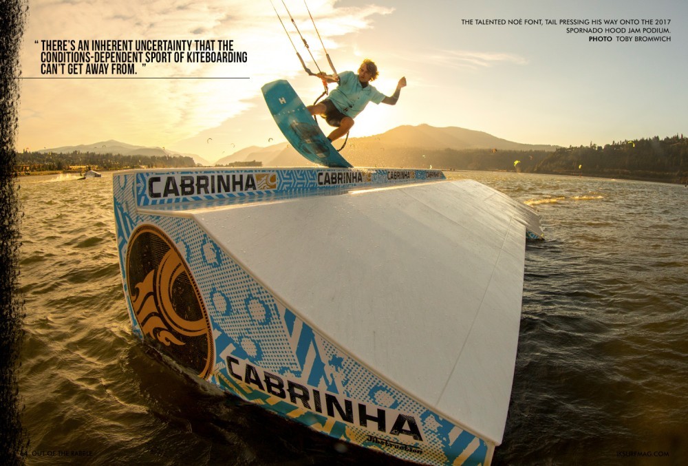 Let’s rewind to the original Hood Jam in 2015. In 2015, the media team, with help from the riders, recorded on video every kicker and slider hit of the competition. On the final night of the contest, every rider was given a score sheet. The competitors then watched through all the footage and judged each of their fellow riders. A lively debate sparked about a few difficult situations to score. For example, what constitutes a clean landing? What if a rider grabs the loop instead of the bar, or rides for a while after the feature and then crashes his or her kite? What if the wingtip sweeps the water, but the kite doesn’t fully crash? What if a rider lands in blind and then pops out instead of passing the bar? What if a rider does a fully submerged cannon ball into the water, but maintains a grip on the bar, pops out of the water and rides away?