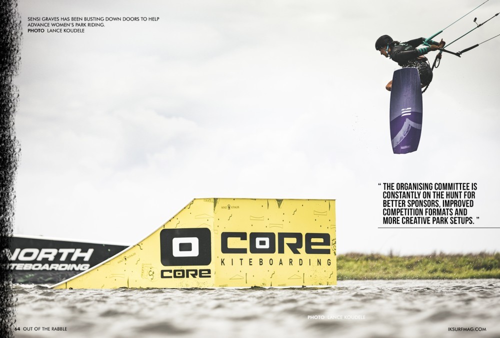 A few years back, the top park kiteboarders decided that they were dissatisfied with the rate that park riding was progressing. They wanted to help build more parks around the world, to encourage more contests, to unify the competition format and to create a world tour, so they formed the Kite Park League. Riders such as Eric Rienstra, Brandon Scheid, Colleen Carroll, Tom Court, Craig Cunningham and Sam Light have been the backbone of the league.
