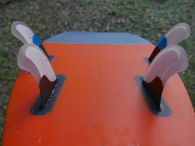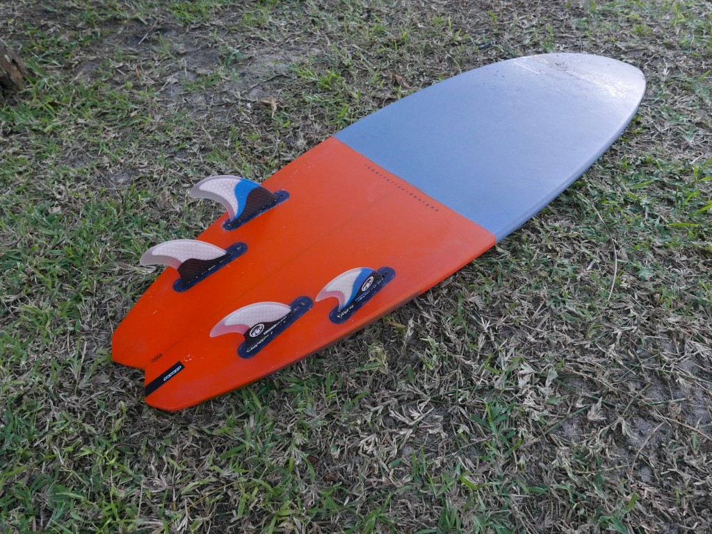 The profile of the board is very thin with a low volume throughout; there is a pronounce rocker line with an increased kick in the tail area. The underside sports a pronounced concave that should help get the board going and help it maintain control at high speeds.