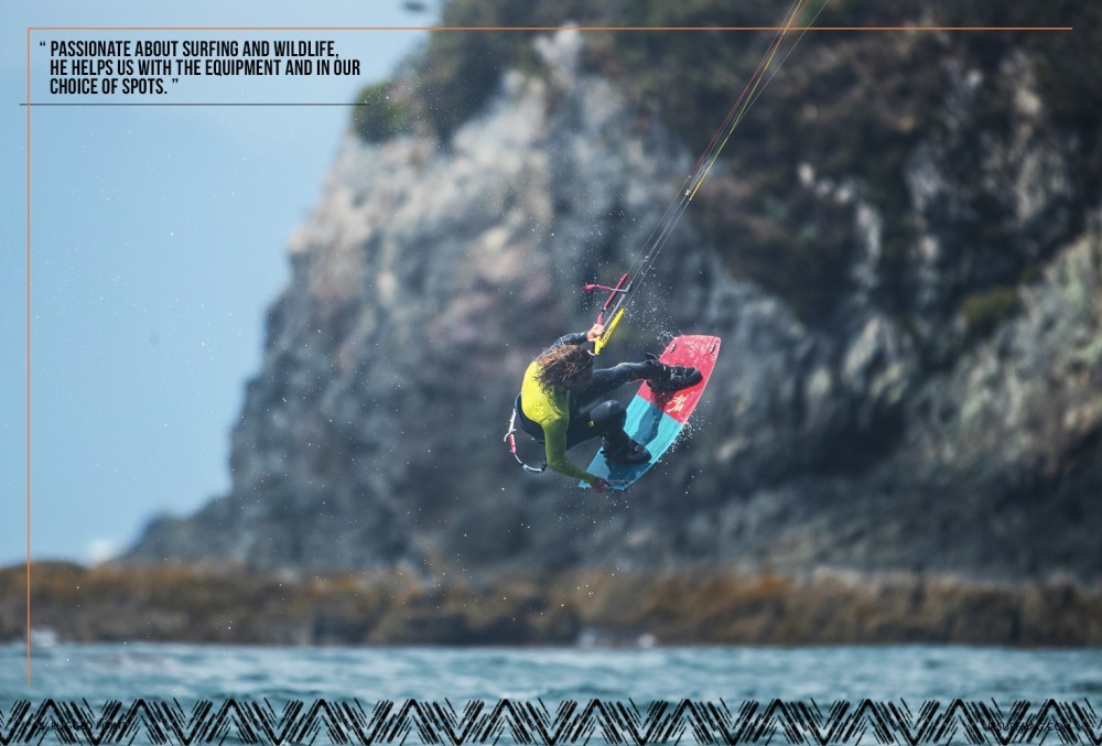 The swell is up, so we pass inside the fjords to reach our destination, and we notice immediately that the wind is finally blowing consistently. The Venturi effect is at work, and Rugged's peninsula is getting hit by a stable 20knot breeze on the beach on the North side. Etienne and Camille rig up and get in the water. The conditions are perfect, the wind is regular, it is beautiful, and the backdrop is incredible.