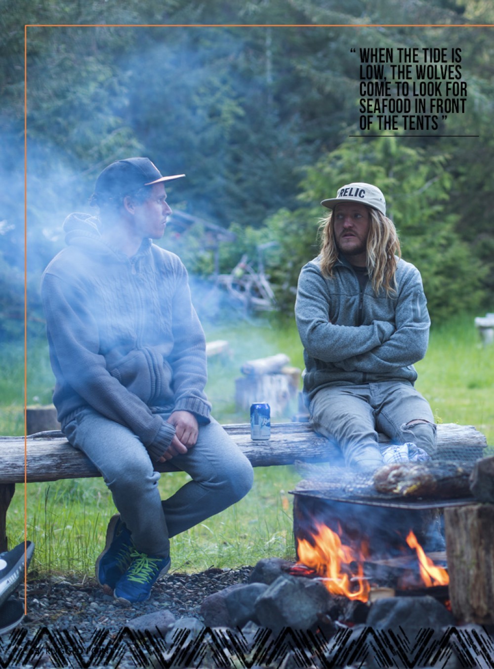 We ended up on Rugged Point Beach, unwinding our kite lines over bear tracks. One morning Etienne found his neoprene boots devoured by the wolves. We surfed with a whale...
