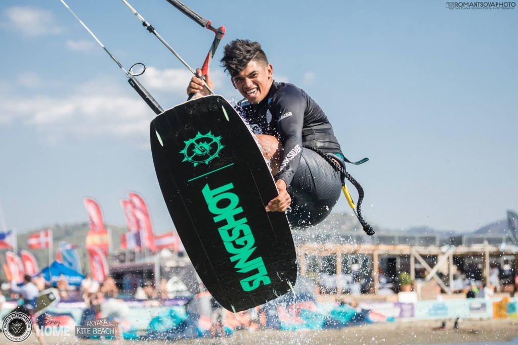 The last semi-final of the day was Heat 18, where Carlos Mario, Current World Champion, opened up with a perfect Heart Attack 7, scoring 10. What a start to the heat! He followed it up with a KGB7, landing close to the beach but managing to maintain control. He continued to ride well even though he was suffering a bit due to an injury to his arm but still cleared his way into the final.