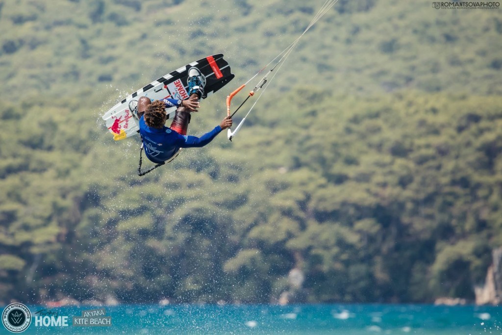 The Women’s semi-finals were outstanding, with an incredibly high level from all of the female competitors. The WKC has some incredible new talent in the Elite Championships. Mikaili Sol, 13 years old from Brazil, wasted no time and performed an impressive Heart Attack to open scoring 9.17. She followed it up with a Slim 5 scoring 9.77, and stylish grabbed KGB scoring 9.73. An incredible start for the young rider. She was unstoppable and secured her spot in the finals here in Akyaka.