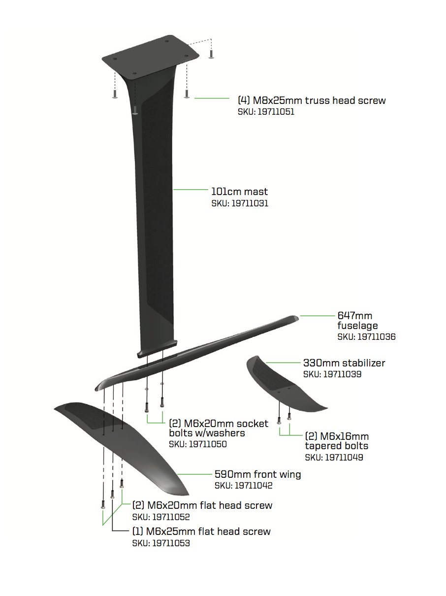 - Large, low-aspect Space Skate 65 wing has tons of lift and stability