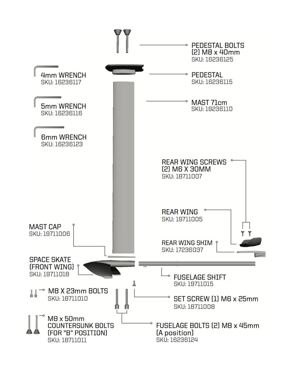 We have taken all the input we have gotten from our foil academy (thousands of users) to build the most dynamic and playful all-around kite foil package on the market, period. This is Slingshot innovation at its finest, and it’s years ahead of the competition. Do your research … you’ll see what we mean. The 2019 Hover Glide FKite package is equipped with the Space Skate 65 (H4) front wing, and the Space Skate is the obvious evolution for the FKite package. This is one of the most versatile foils in our line. Its size and surface area provide the lift and stability needed for learning, progression, tricks and transitions. Its unique dihedral shape provides a crazy level of dynamic carving control and self-centring flight that you have to feel to believe.