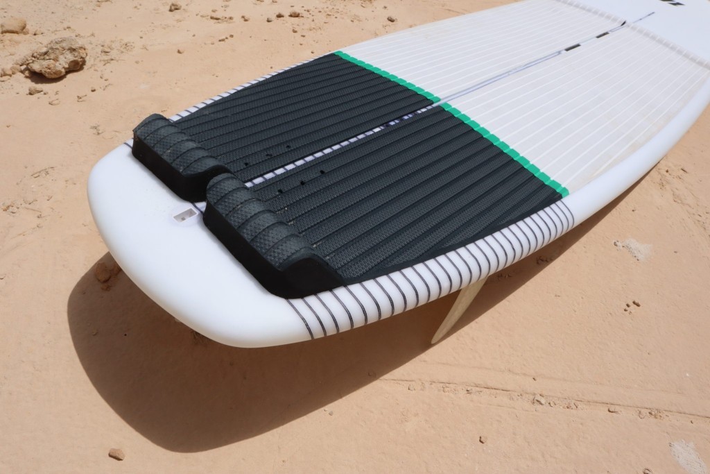 Under the deck pad, there are recessed DualShock EVA inserts, to cover the main impact areas reduce denting around heel areas. North Kiteboarding’s solution to reduce overengineering of impact areas, keeping the boards lightweight and retaining the required flex.