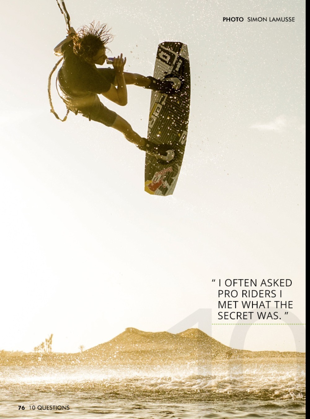 I've always dreamed about becoming a professional kiteboarder, and I often asked pro riders I met what the secret was. They always answered with "train hard and remember to have fun!”, that’s the advice I always follow.