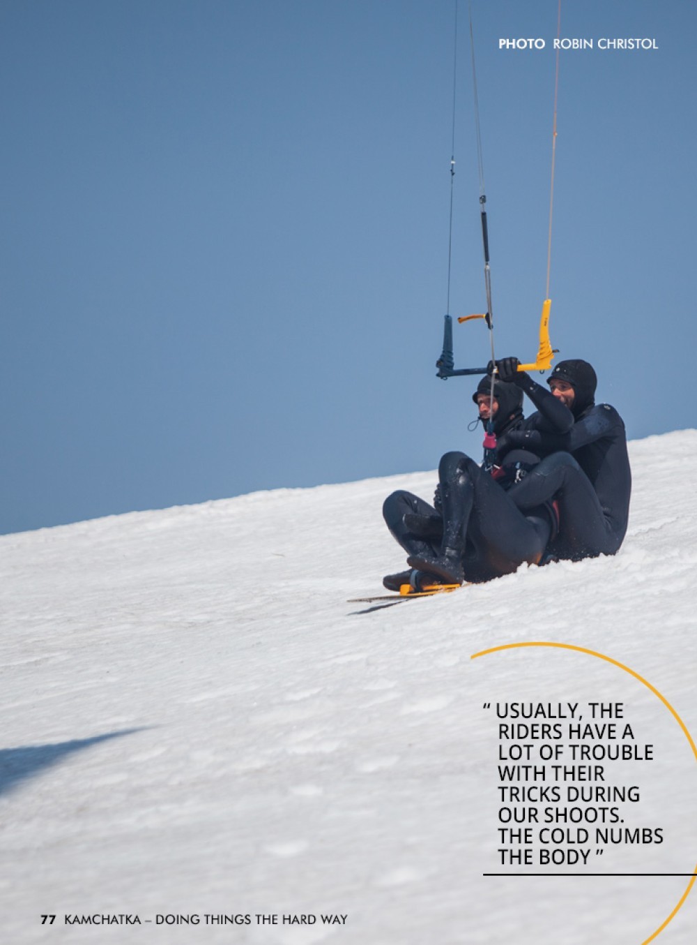 The following day, the wind was still there, it was very steady, a kind of thermal wind created by the difference between the 2°C water and the air that could reach 15°C during the day. Usually, the riders have a lot of trouble with their tricks during our shoots. The cold numbs the body, the conditions are often unpredictable, and the hood, gloves, and boots do not help to grab the bar, but here they were able to do everything. It was as if we were in Brazil (with 25°C less).