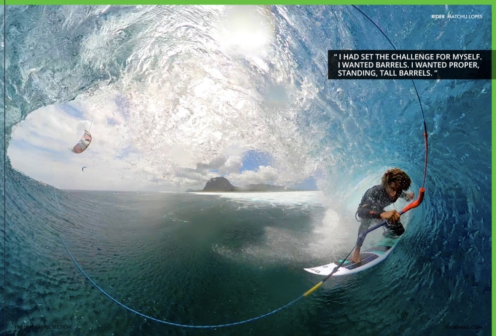 Matchu Lopes: "You know, riding barrels is something I was never good at, but it always caught my attention. I always saw Keahi, Mitu, Airton, and Reo, these great riders getting really good barrels. I hadn't figured it out properly; I was doing turns and airs, and then I finally said I'm going to do this. I stopped doing turns. I was only looking for barrels. It was a game changer for my life and my motivation to be on the water. Getting barreled with surfing is just mind-blowing. With kiteboarding, it's so difficult, and getting a long barrel is even harder. But I had set the challenge for myself. I wanted barrels. I wanted proper, standing, tall barrels.