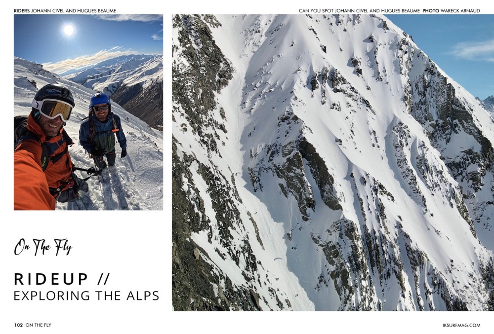 It all started around 20 years ago when we did our first ride up on the south face of this mountain called 3 Evéchés. The face is not steep, similar to that of a blue run. Each winter, step by step, we started riding new places, checking the mountain around us and saying, "One day, we will ride this mountain", and we rode it. Each year, we pushed a bit further, snowkiting even steeper lines.