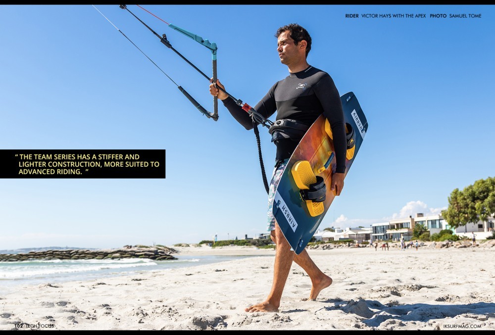 The Apex is suited to big air and freeride. The Team Series has a stiffer and lighter construction, more suited to advanced riding. While the Apex Team is a top-level big air board, it is outshone in nuking rough conditions by the Livewire Air. The Livewire Air is a more high wind specific board, whereas the Apex Team is a more all-around air-style big air board.