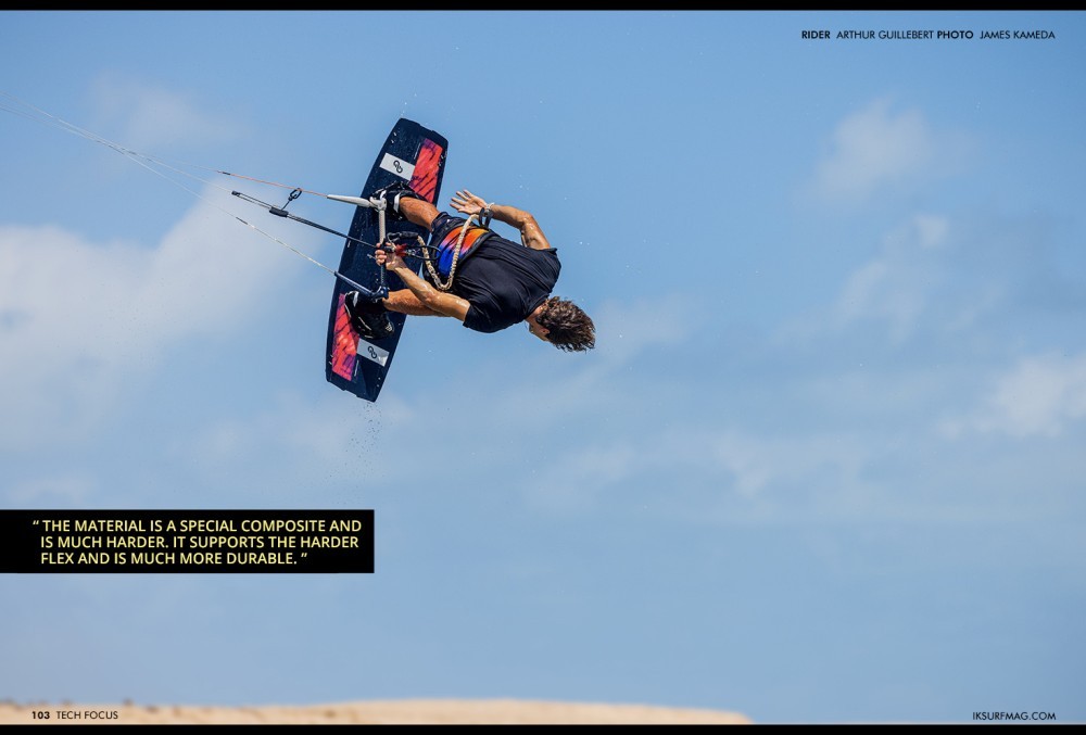 Our board shaper, Franz Schitzhofer, was in very close communication with Arthur. They started to refine the board at the beginning of 2023. One of their aims was to refine the flex pattern, trying different layups of carbon and glass to find the right mix. Version 1 had a full layer of carbon, but for V2, we changed it to a spread tow carbon stripe with a full layer of triax carbon to make the board a bit more dynamic with softer landings.