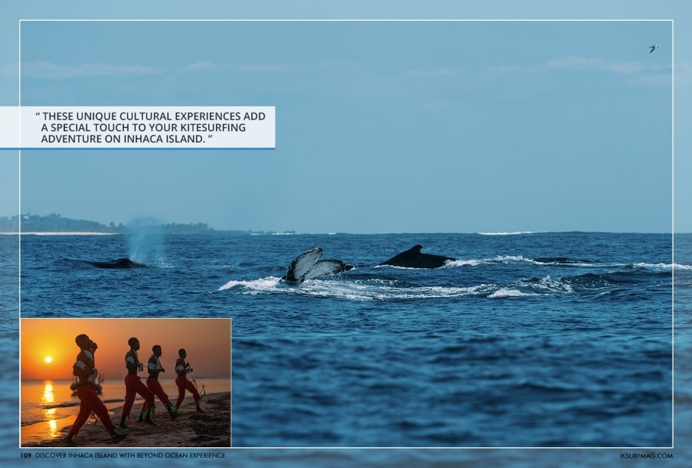 One of the highlights is the sunset boat ride to the Portuguese Island, where we host a candlelit beach dinner. You can enjoy traditional Mozambican music and dancing performed by local artists—a cultural experience that always leaves a lasting impression. If you visit during humpback whale season (August to October), you’ll have the chance to see these gentle giants up close and sometimes even swim with a calf and its mother. These unique cultural experiences add a special touch to your kitesurfing adventure on Inhaca Island.
