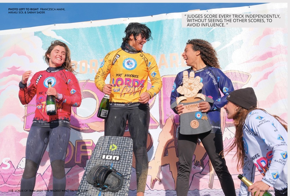 Mikaili Sol’s victory at Lords of Tram wasn’t just about winning the event—it sealed her incredible comeback season by securing the 2025 GKA Big Air Kite World Championship title. With her eighth world title now in the bag, she cemented her legacy as one of the greatest female Big Air riders ever. With another strong performance, Francesca Maini claimed second place in the overall world rankings, proving her consistency at the highest level. Meanwhile, Alice Ruggiu’s impressive season earned her third place in the final championship standings, a huge milestone in her career.