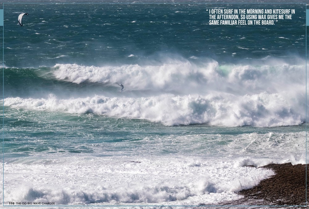 Having been a surfer for so long, I’m just used to using wax. I have a sponsorship with Hidden—their wax is amazing, super sticky, and works well. I know the new front pads are great, too—I tried one, and it had incredible grip—but I guess I’m just so used to having wax on my board that a pad in the front still feels strange. I think it’s more about comfort and consistency; I often surf in the morning and kitesurf in the afternoon, so using wax gives me the same familiar feel on the board. Maybe that’s it!