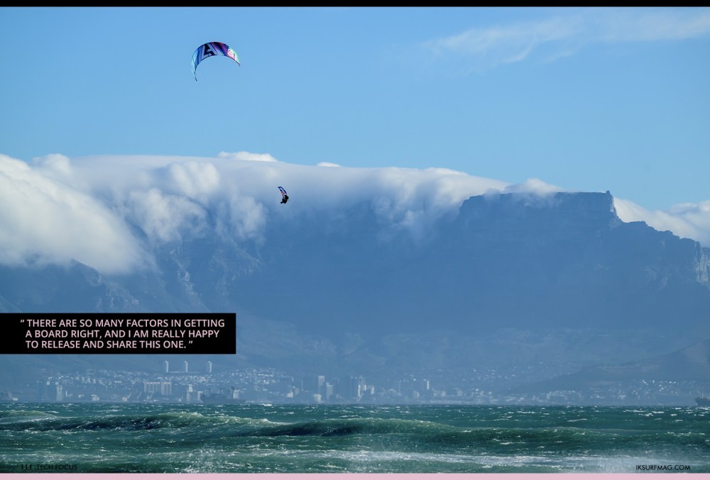 It was really exciting to have the chance to produce a board from scratch to suit our kites and see what is possible in design. I have a strong philosophy about how a board should work and feel, which is echoed by Ralf. The channels and concave are pretty unique, but I would just say the precision and all the parameters (rocker, flex, outline, etc.) are what set it apart.