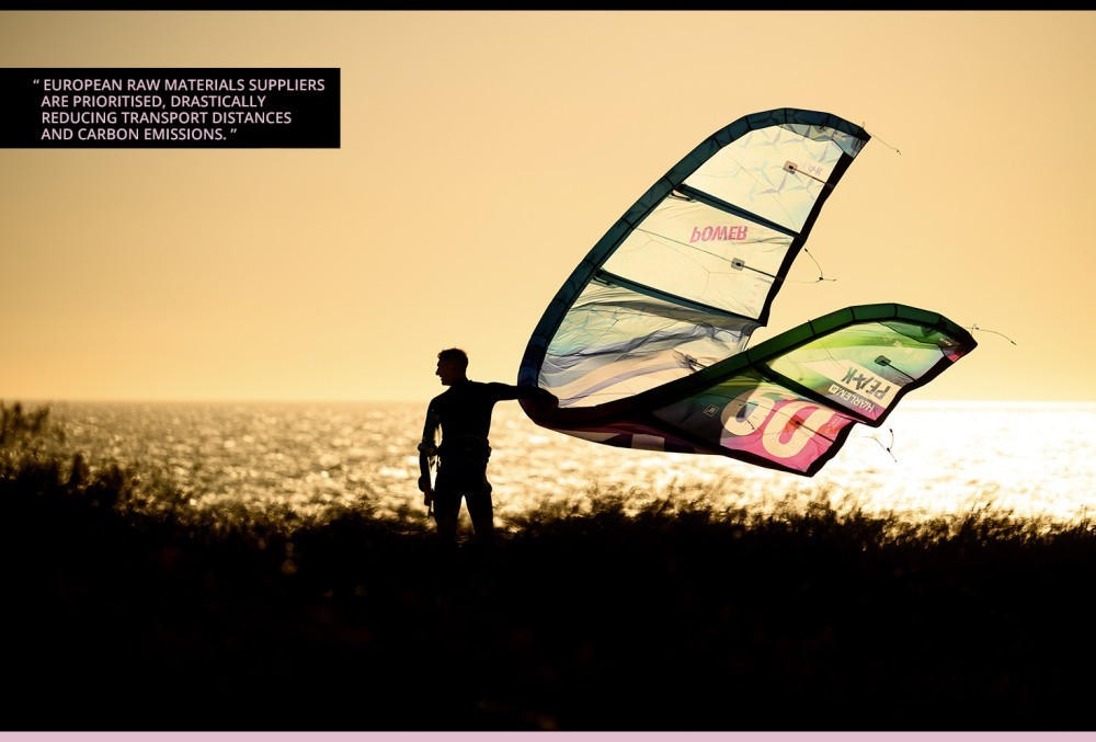 This topic is a part of the company values, really trying to find better solutions, if possible and viable. Of course, we work on optimising the packaging and logistics processes, but when it comes to kite production, there are a couple of factors. Our full kite (and wing) line-up is produced at Brainchild production, which operates on solar energy. European raw materials suppliers are prioritised, drastically reducing transport distances and carbon emissions. Our kitebag is made of 97% recyclable and recycled materials. All kites are also digitally printed, meaning all the material that enters the factory is white, which saves a lot in waste material but also saves a lot in the colouring process, as the process to dye the material into a solid colour is very energy-consuming.