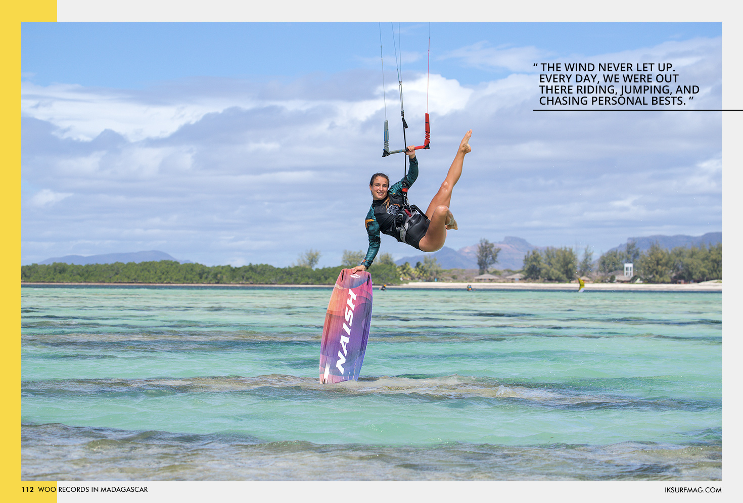 The wind never let up. Every day, we were out there riding, jumping, and chasing personal bests. One day it blew at 45 knots, and I managed to break the Madagascar WOO record with a 29+ meter jump, definitely a standout session.