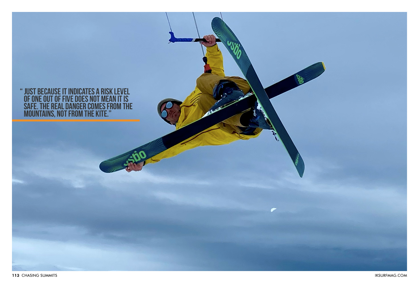 All mountains can be a good spot one day; you just have to be there at the right time. The red flag to watch is the BRA, or the Avalanche Risk Bulletin; however, just because it indicates a risk level of one out of five does not mean it is safe. The real danger comes from the mountains, not from the kite.