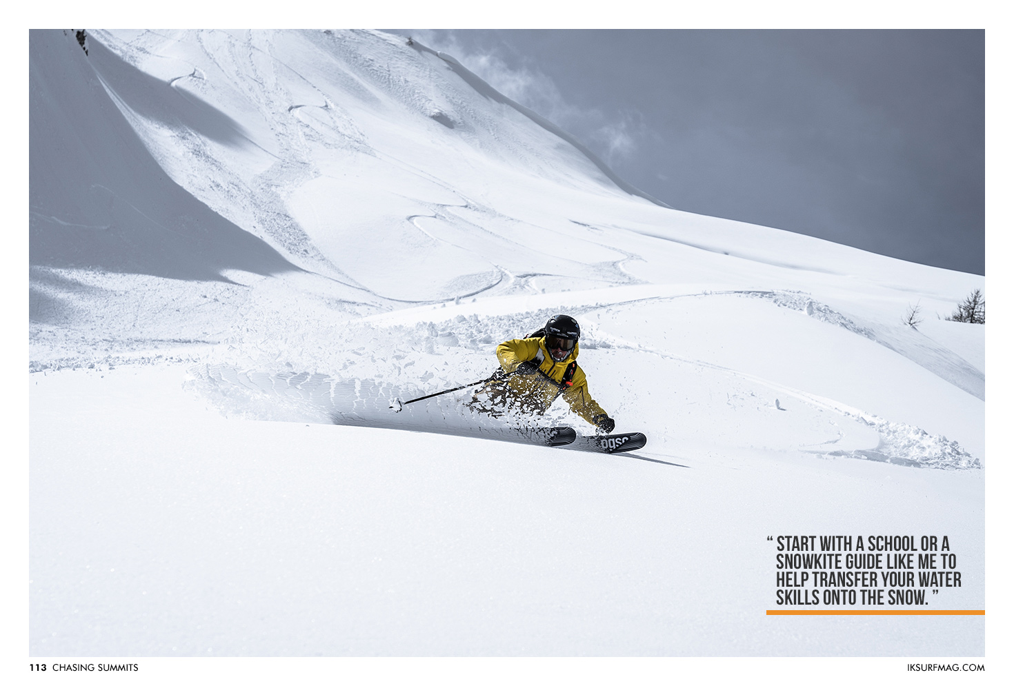 - Start with a school or a snowkite guide like me to help transfer your water skills onto the snow.