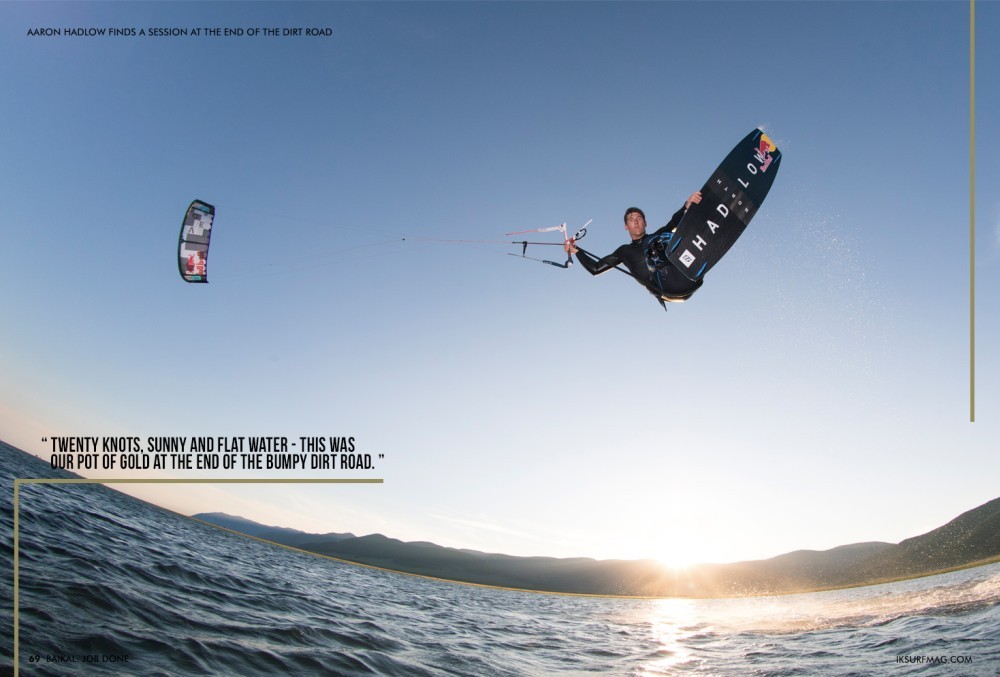 We found a place to stay close by, had lake fish for dinner and slept early. At dawn, we were ready to roll, and it was windy. We found breakfast and arrived at the spot. Twenty knots, sunny and flat water— this was our pot of gold at the end of the bumpy dirt road. It was epic. Tricks were landed, shots were fired, clips were stacked, and fun was had. We kited for as long as our bodies could swap the bar. Job done. One more day and we were out of there.