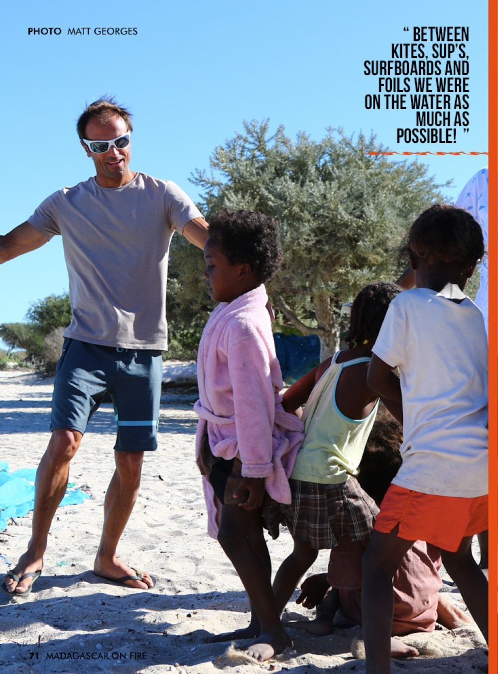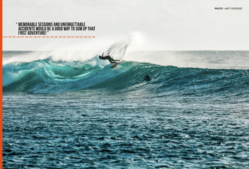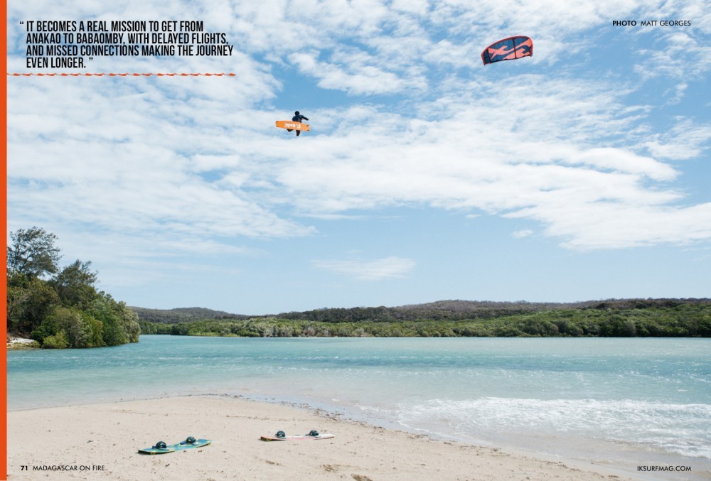 The trip starts in Anakao, in the south east of Madagascar, the spot is fantastic for waves but also for strapless freestyle. To get there, you have to take an internal flight from the main airport of Antananarivo, then a long ride in a zebu carriage (bus) followed by a lengthy boat trip.