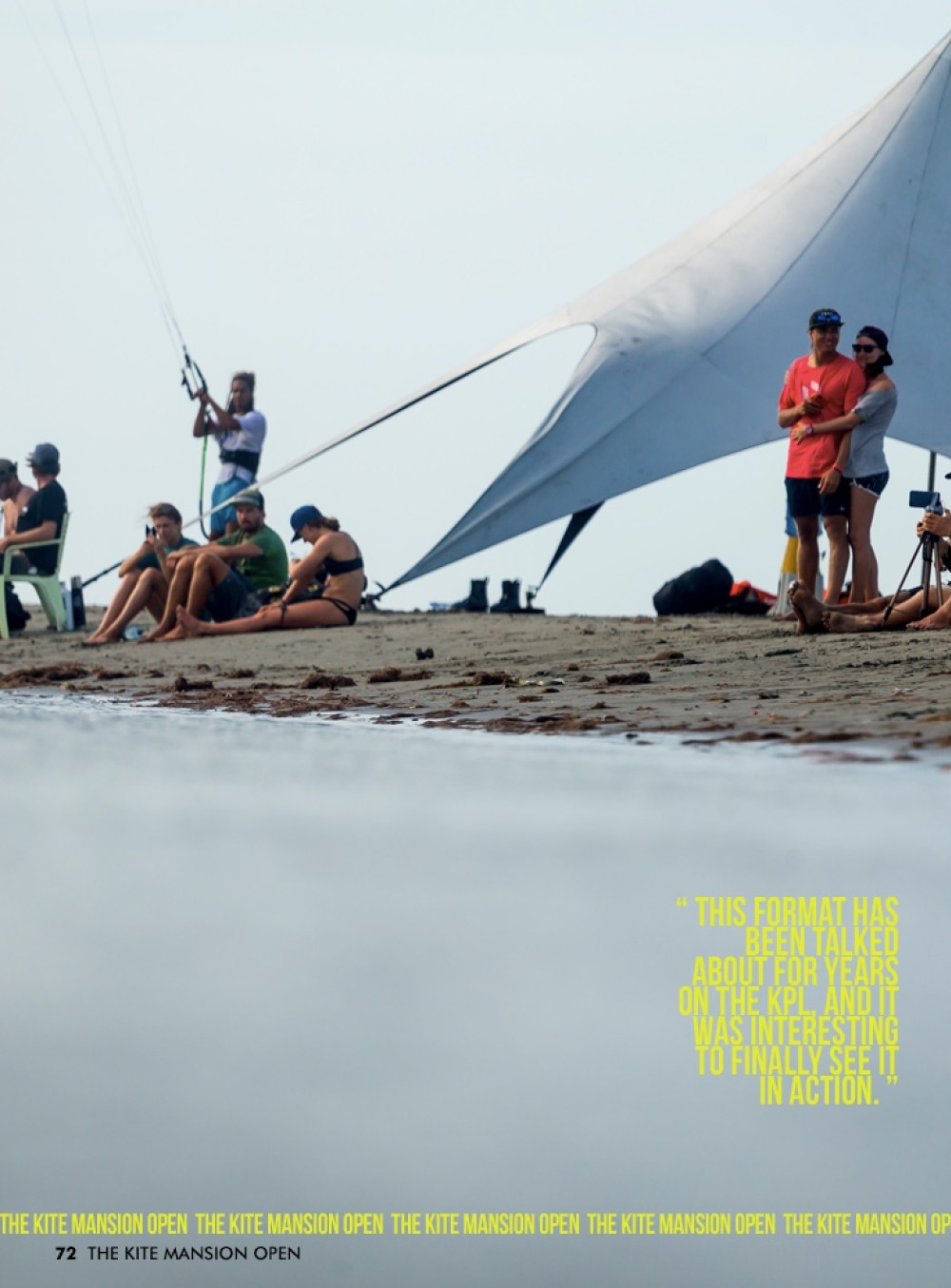 During the Kite Mansion Open, we had nineteen riders; fifteen men and four women. The Kite Mansion Open was a unique event, and we held the competition on 'The Lines'; meaning we placed two features in a line so that a rider could hit one feature, do their manoeuvre, land and then immediately edge into the next feature. This format has been talked about for years on the KPL, and it was interesting to finally see it in action.