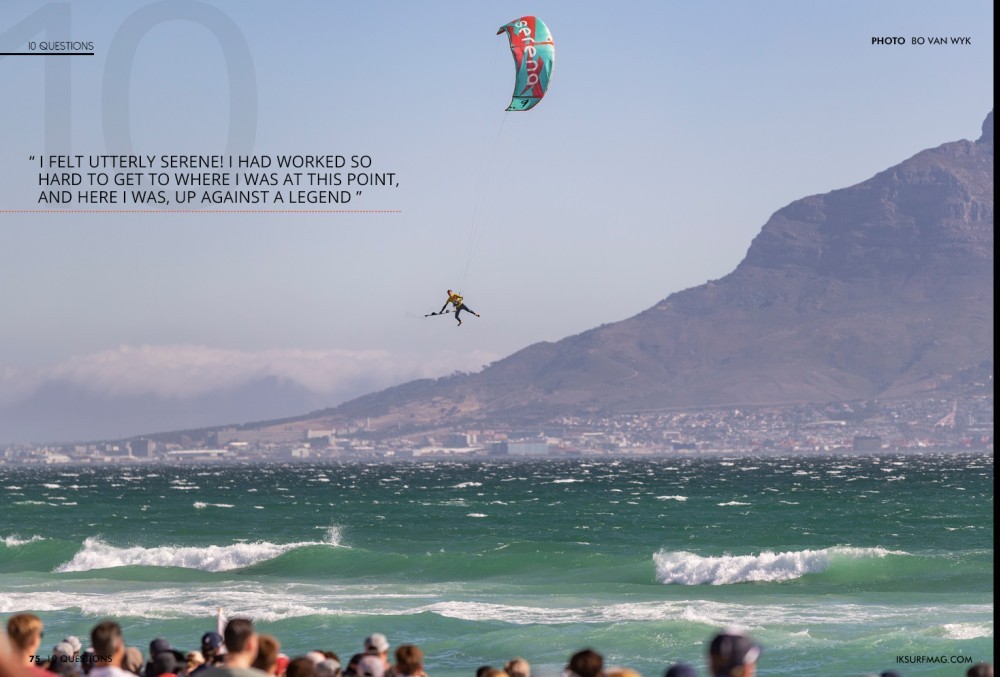 I felt utterly serene! I had worked so hard to get to where I was at this point, and here I was, up against a legend, which has been on the podium for about fifteen years; I was where I wanted to be! All the conditions were lined up perfectly, although the wind wasn't as strong as I'd hoped it to be (between 20-25 knots) I did the best I could do. I even attempted my first Megaloop Triple Late Back during that heat, but I didn't manage to land it, unfortunately!