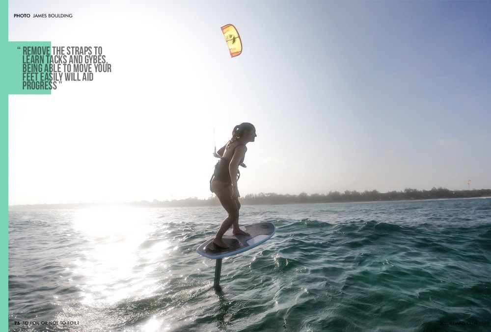 - Once you have cracked riding remove the straps to learn tacks and gybes, being able to move your feet easily will aid progress, but you will need to hold the rail of the board and steer the kite with one hand during the water start which is tricky to learn, especially in light winds. A board with low volume and a foil that floats will make strapless waterstarts easier.