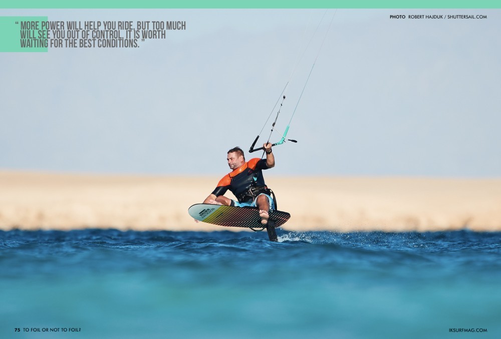 - As you get more confident go out a little more powered. More power will help you ride, but too much will see you out of control, it is worth waiting for the best conditions. Sheet in and out to adjust the riding height of the foil, this really helps with your first few attempts! As you progress you’ll find you can handle bigger winds and lighter winds too riding an overpowered foil takes as much skill as getting one going when there isn’t enough wind.