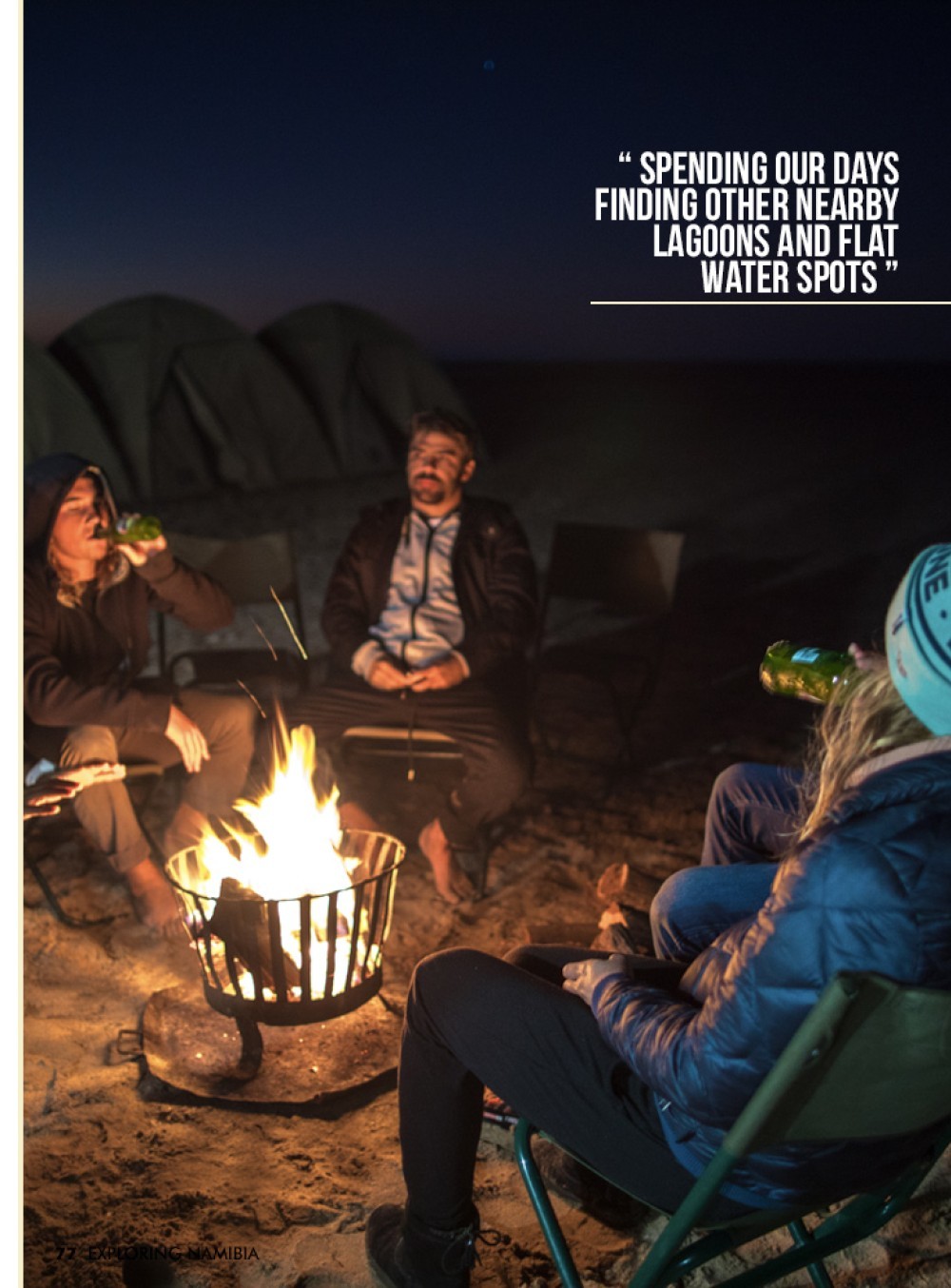 We found an empty lagoon with a steady breeze blowing over the narrow sandbar and decided that it didn't get any better than this for a freestyle session. Kiting until we couldn't see a thing, we headed to our home for the night where we were welcomed to a full set up camp with fresh fish caught during our session roasting on the grill. A day of travel away from anyone else, the stars, sounds, and mix of salt air with campfire smell sunk in as we exhaustedly settled in for one of the best nights of sleep of the entire trip.