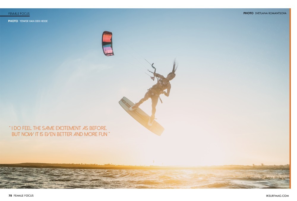 Within a month, I was already landing my first backrolls. I realised that I could combine dancing in the wind, being in the ocean and flying a kite; and that was it, I was hooked! I started eagerly awaiting those windy days until I could get back on the water!