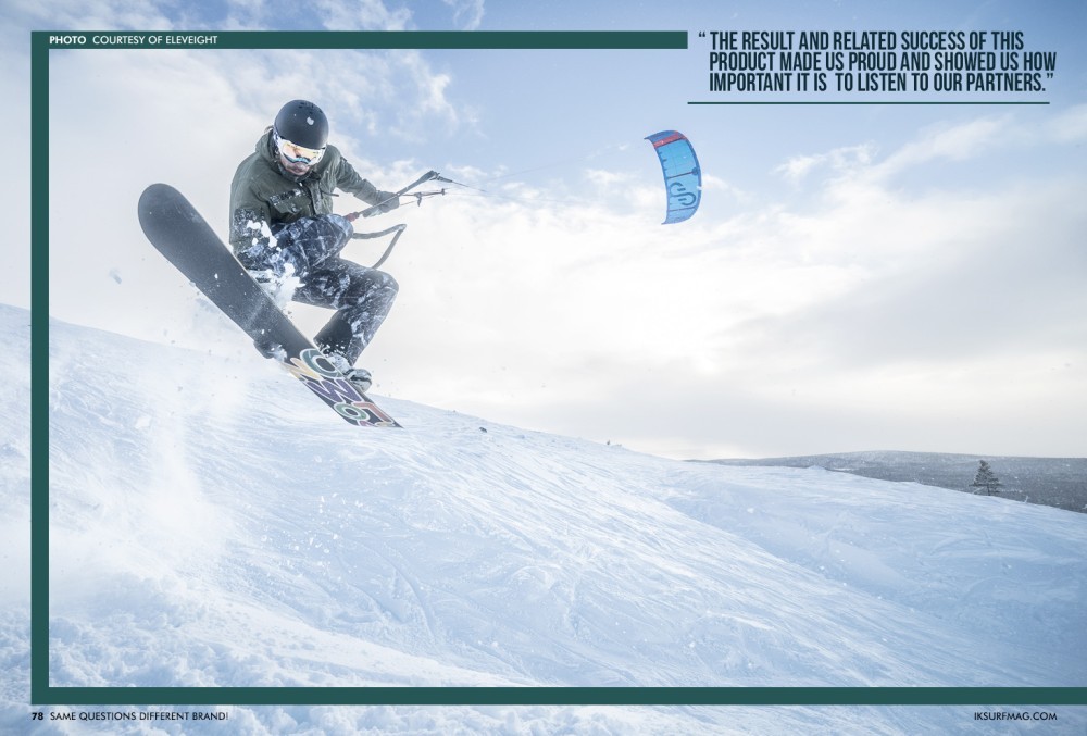 In marketing terms, we build the finest performance kites in the market! Above that, we believe in high-quality products and customer service. Eleveight is a self-funded brand with strong core values in water sport. We are kitesurfers, and we want to create products which are state of the art. We are a transparent brand, which is approachable on all levels, and we want our customers to trust us and get the best service as possible.