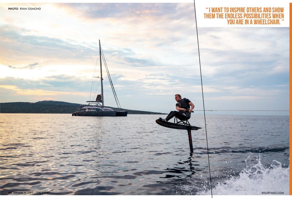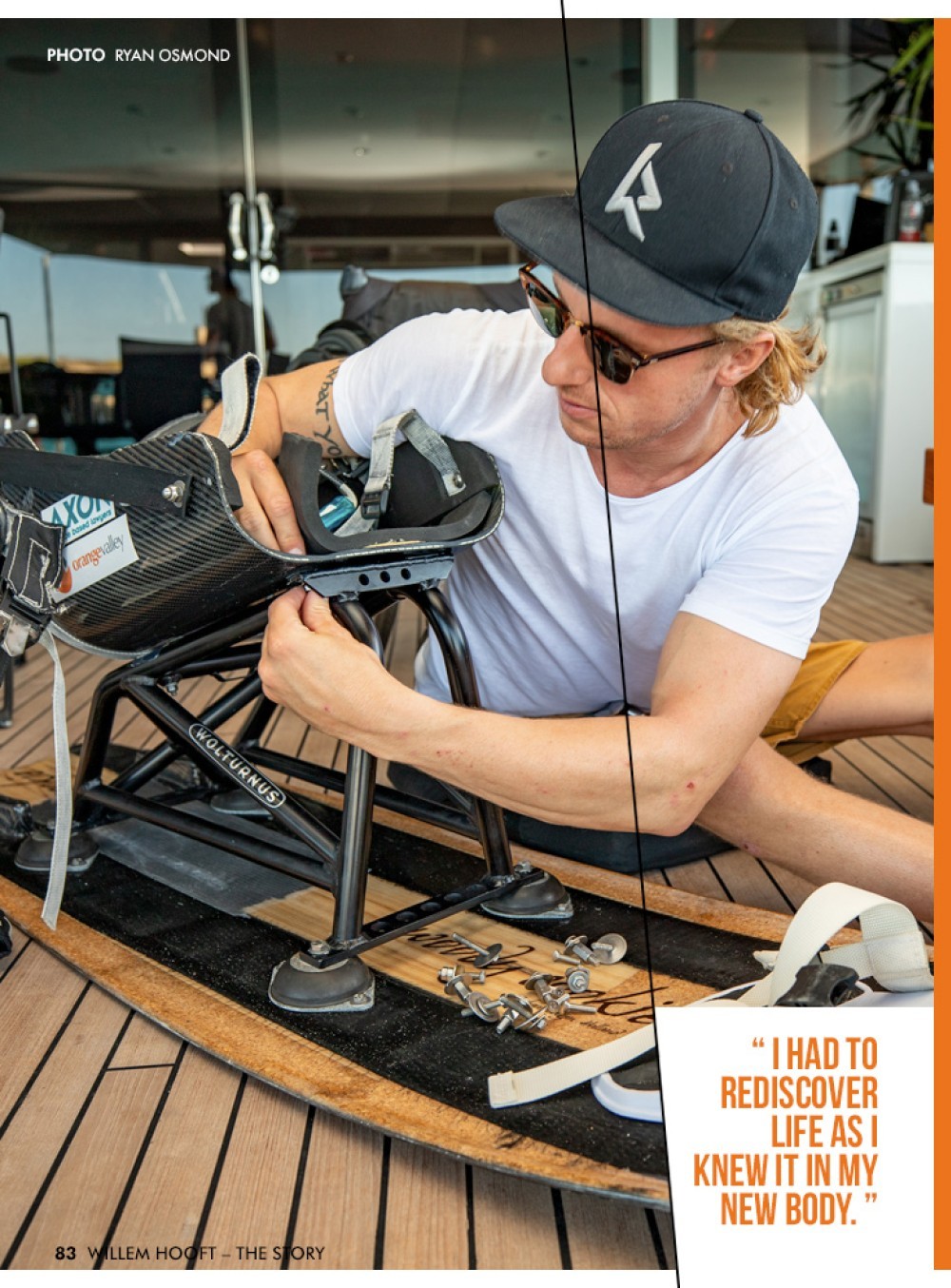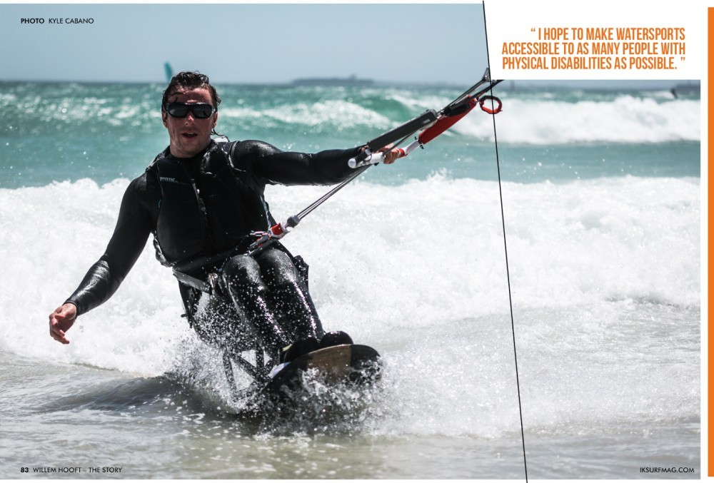Over the next nine months, I dedicated my entire life to practising at sea and learning several safety techniques in the swimming pool. Two years, almost to the day, after my accident, my dream of riding exhilarating three-meter waves in Cape Town was going to become a reality. I started my own YouTube channel (www.youtube.com/c/willemhooft) and Instagram account (@willem.hooft), getting over 20K followers worldwide. My goal was to make a living being a full-time sit-kitesurfer, and a year later, I got sponsored by 2 renowned American companies; Slingshot and Wind Voyager. They have continuously helped me fulfil my dream and proceed to support me throughout my journey. I have recently started the "Willem Hooft Foundation" whereby I want to inspire others and show them the endless possibilities when you are in a wheelchair. Through clinics and introduction days, I'm trying to put sit-kitesurfing on the map, making it more accessible for people with physical disabilities. My goal is to create sit-kitesurfing Paralympic sports.
