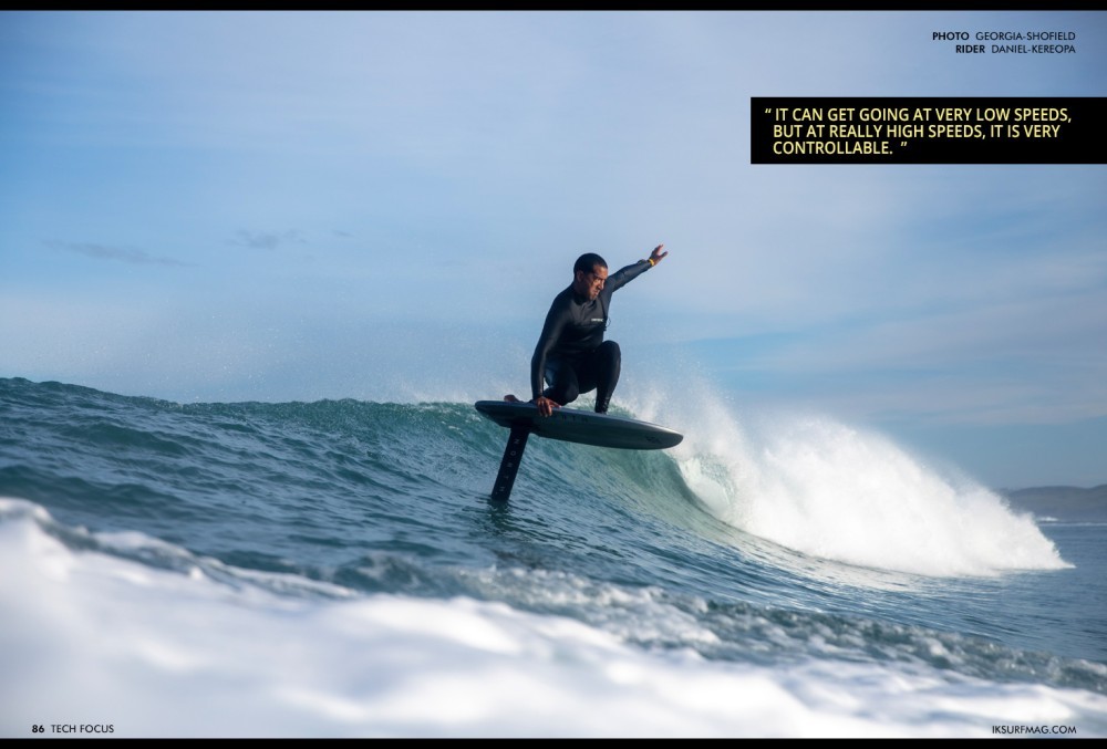 This does a couple of things: Firstly, it makes the wing itself a lot less pitch sensitive – it needs less stabiliser angle to be stable in pitch. Secondly, it gives the foil an incredible speed range. It can get going at very low speeds, but at really high speeds, it is very controllable.