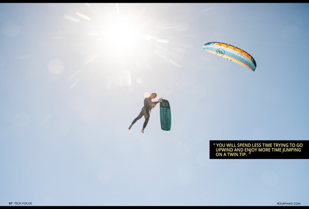 It will give more hangtime for sure and will fly in a lot less wind, which comes in handy when on a hydrofoil. The better upwind performance helps you when doing tacks on a hydrofoil, and you will spend less time trying to go upwind and enjoy more time jumping on a twin tip.
