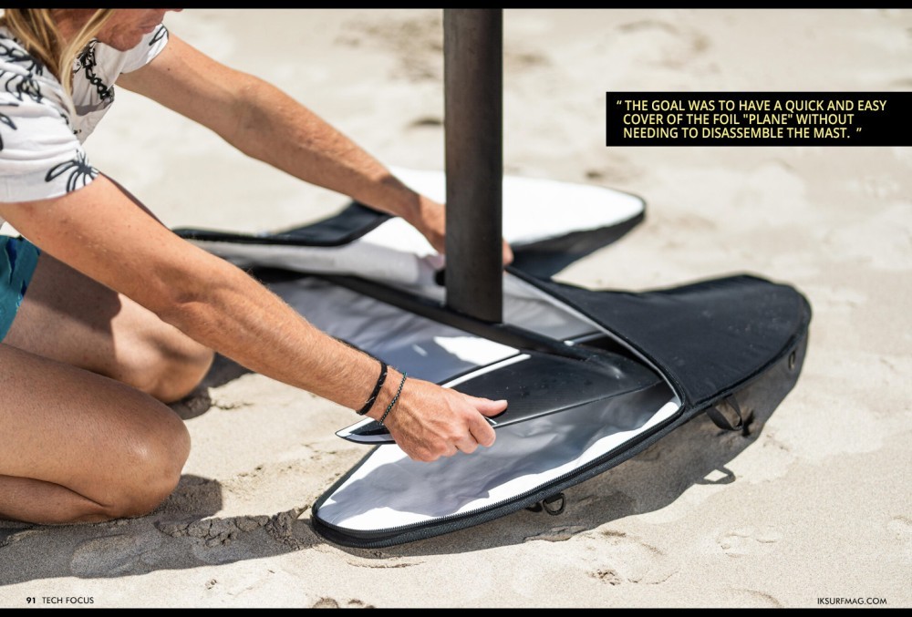 Correct, the goal was to have a quick and easy cover of the foil "plane" without needing to disassemble the mast. You have full protection and rigidity due to solid 10mm foam padding plus surrounding webbing binding. Another feature is the super-robust premium YKK Racquet Coil zipper #10 with an extra big opening and grippy zipper pulls in a bright colour for easy access.
