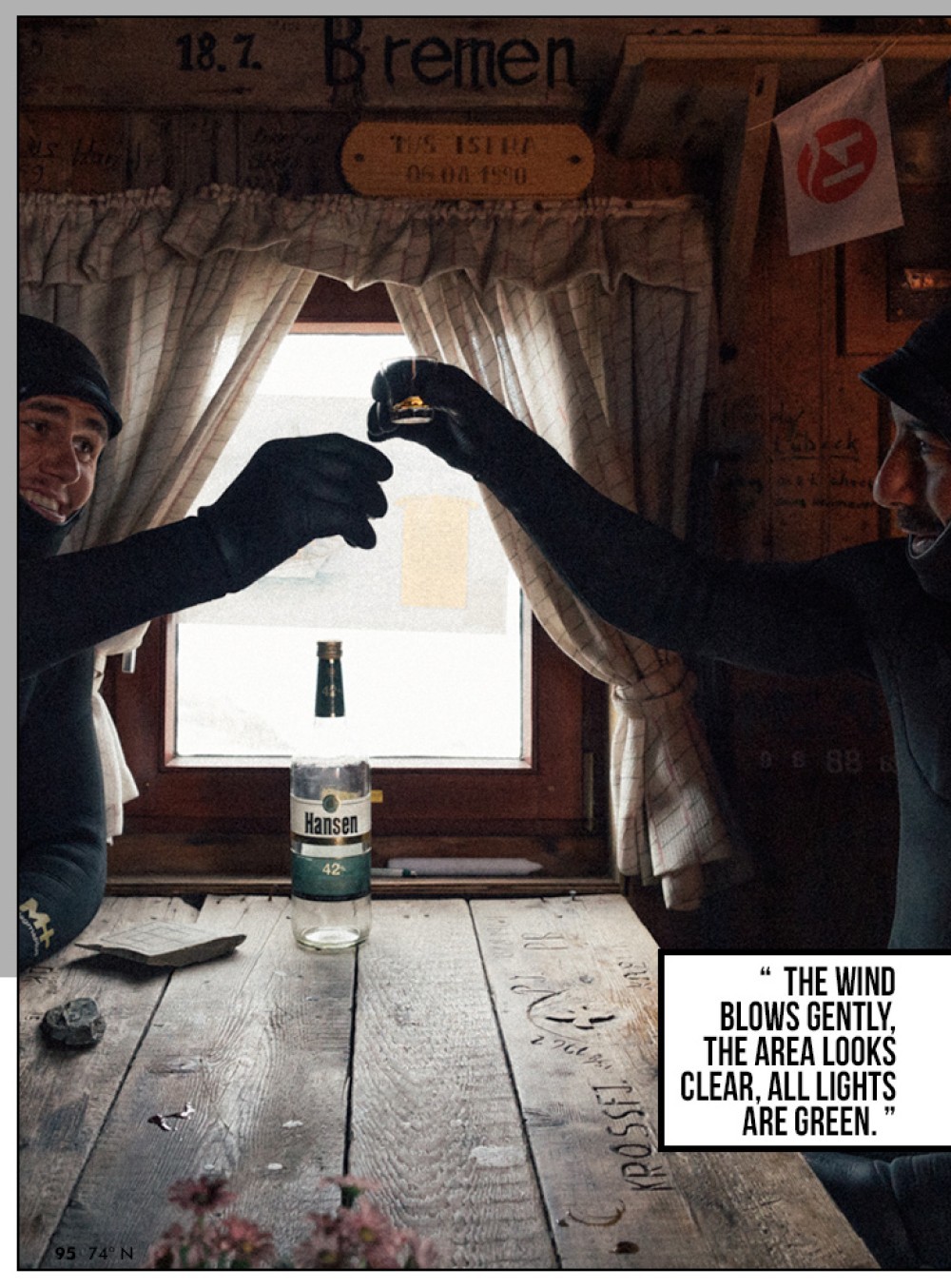 That night, I hear the wind blowing incessantly through the halyards. I'm looking forward to doing Big Air here and Matt and Mallo even more. We return to the same spot as the day before and split into two groups. Initially, my role is to be on polar bear watch and to ensure they don't approach us or come too close. Tricks are landed one after the other as we are all enveloped by the cold and the dullness of this seemingly never-ending overcast weather. That said, I am under the impression that we are getting used to it.