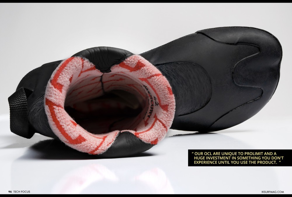 Prolimit is the only neoprene footwear producer using its own exclusive Lasts for its boots and shoes. OCL stands for Orthopaedic Controlled Lasts. To understand what it does, you have to know the production process. A neoprene sock is made, fitted on the Alloy Lasts, and then the rubber is applied and cured in an oven. This curing process determines the shape of the boot. Most of the Lasts out there are not made specifically for our kite and wind sports, where a dynamic stance and barefoot feeling are required. OCL ensures that at the arch, sole and also your Achilles tendon, the neoprene fits perfectly, and there is no air in your boot. As soon as you enter the water, the air disappears and sucks the water inside. If you look at an OCL boot, you will see that the sole is concave, the arch is lower, and the back of the boot is narrower at the Achilles. OCL connects, so there is no suction and a much warmer, better-fitting boot.