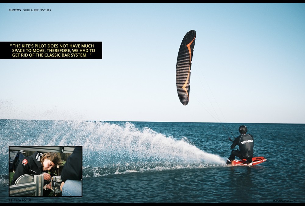 A series of tests were conducted last November in the South of France, with wind conditions that will be the closest to reality. The whole purpose of these tests is to launch the kite from the water and steer it with a control system, like in the boat. The tests started with a small 9m kite, and they increased in size until reaching 44m. What worked well was the ease of piloting a kite, even for the ones who had never done it before. As for the regulars, moving from a bar to a steering wheel happened to be relatively intuitive.
