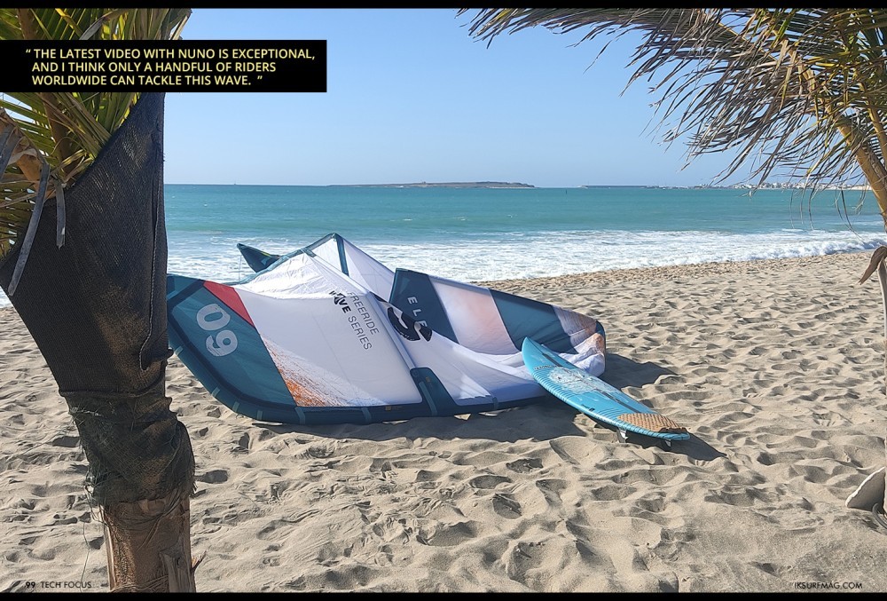 The latest video with Nuno is exceptional, and I think only a handful of riders worldwide can tackle this wave. In general, a wave kite should be very stable with stall-free flying characteristics for easy drift and carefree riding. You want to trust your kite even when the lines are a bit slack or the wind gets iffy. You need to be able to turn rapidly and tightly but with less power development than other kites; this helps with the control of the turns and finding the right line on the wave.