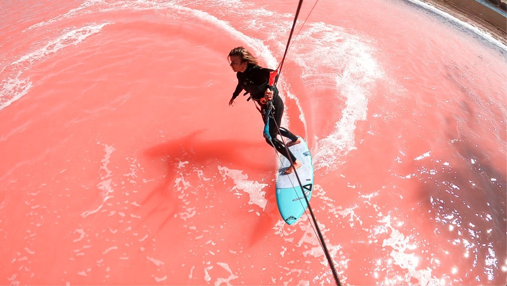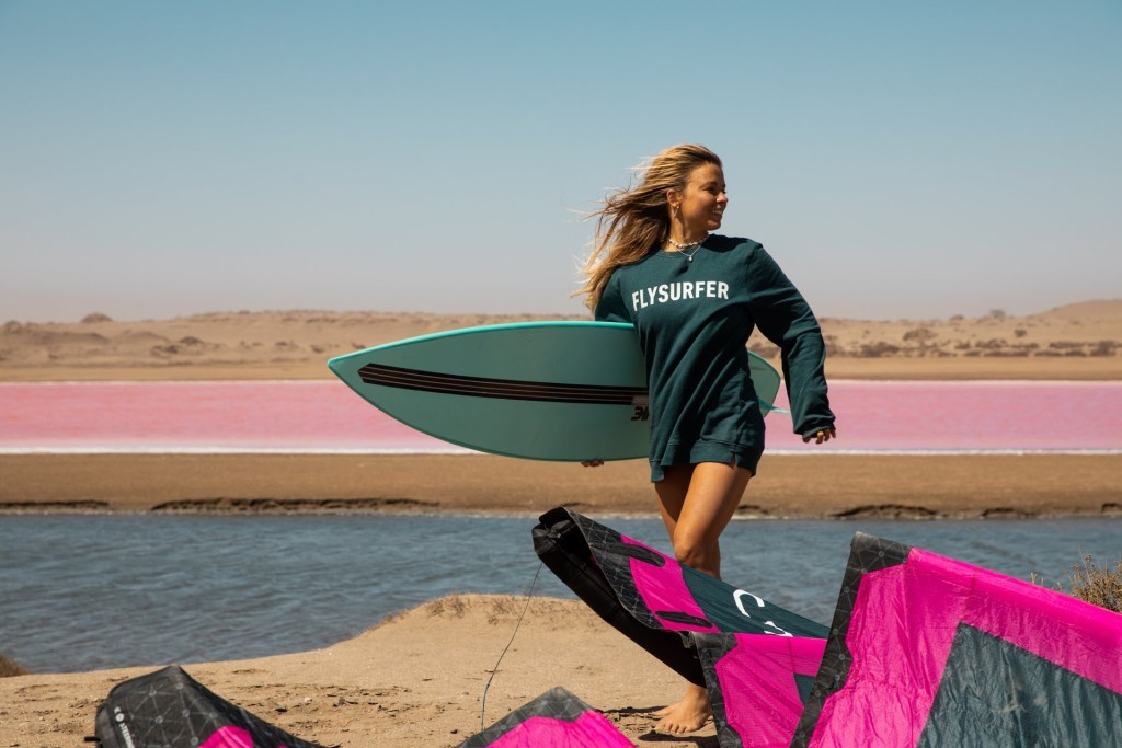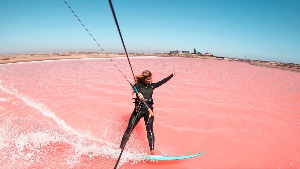 This turned out to be one of my highlights of the trip. I’ve seen lakes like these in videos before, but never would I have thought that they are that colour. I couldn’t believe that water was safe to touch. Was it toxic to touch? I had no clue! Luckily, we found a local who ensured us that it was safe to go in there, so I had to do it. The theory sounds more comfortable than it is to do it. What no one tells you is that the water is pink due to algae growing in there because of the high salt percentage the lake has. As a result, the entire bottom of the lake and also the sides are just a thick salt crust. Salt is a crystal, a very sharp crystal; it’s super painful to walk on. I only realised that when walking into the water with my kite up and my board under my arm. However, there was no way back. No pain, no gain.