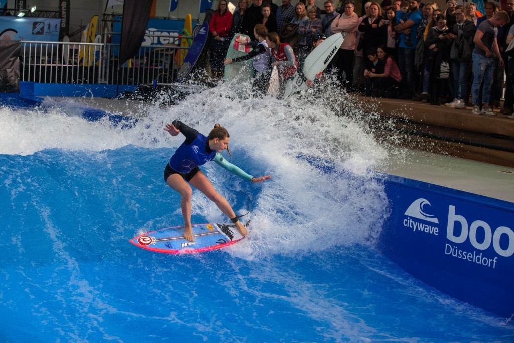 Germany’s Carsten Kurmis, who celebrated his 52nd birthday on the final day, took third place among the SUP men in the wave. The women’s SUP Wave Masters were shaped by Fiona Wylde, who despite her diabetes is one of the most successful SUP athletes worldwide. She was unbeatable in her fourth Master’s win in a row in Düsseldorf. The 22-year-old raved about her visit of boot Düsseldorf: “It is incredibly impressive how much passion there is for surfing in this hall. Actually, surfing is an outdoor sport. And all this happens in the middle of winter. It rather feels like a cool event in summer.”