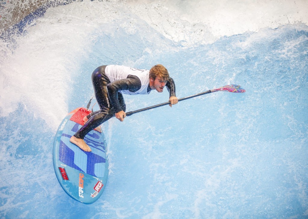 Simon Bitterlich confidently earned Men’s Wave Masters on the opening weekend of the world’s largest water sports exhibition boot Düsseldorf. The 20-year-old from Munich acted lightly and smoothly on THE WAVE by citywave®, made the fewest mistakes and showed the most beautiful moves. Also, the tour second of the citywave® pro World Tour 2019 built this wave himself.